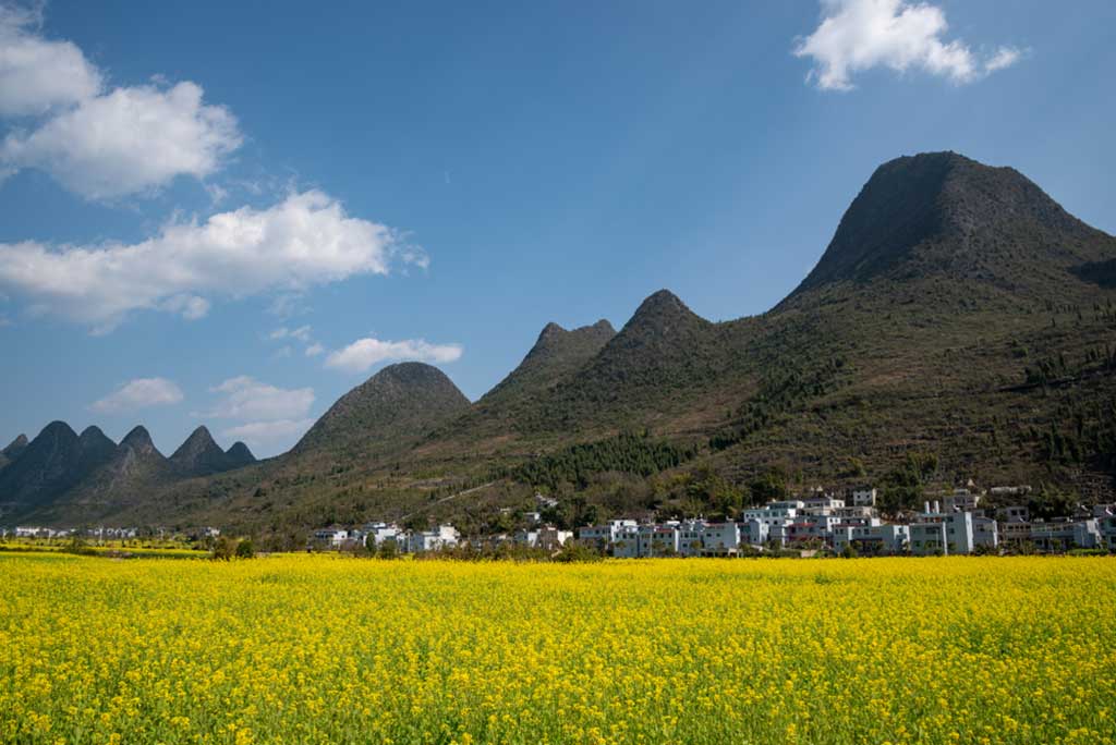 Wanfenglin is a classic karst landscape which is divided into the “east forest” and the “west forest”. The characterize of the east forest is the cluster of towering karst peaks, while the west forest is on a karst plateau and is the main focus of visitors. You can find more than 20,000 peaks and the tribal villages of the Buyi tribe dot around them.