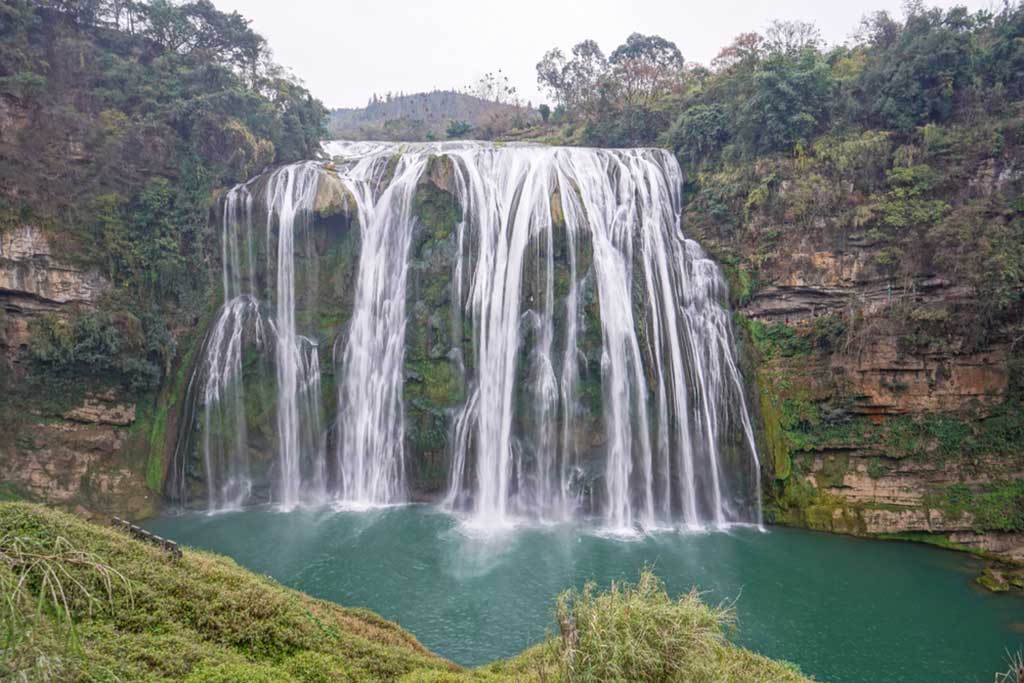 There are a lot of “huangguo trees” that grow along the riverbanks, that’s the reason for naming the waterfall, Huangguoshu Waterfall.  Surrounding by lush vegetation, gorges, limestone caves, stone outcroppings, and rock pillars in a classic karst landscape. It is one of the world’s greatest group of waterfalls.